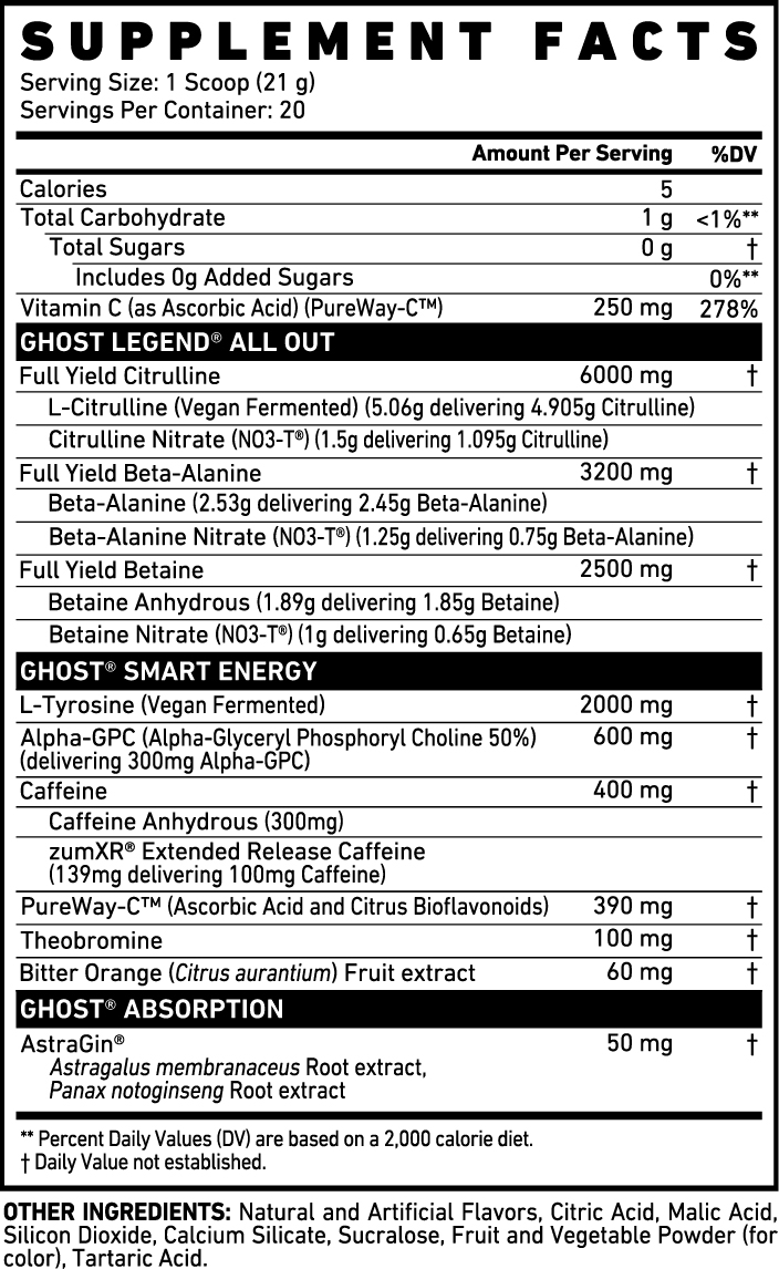 Ghost Legend All Out V2 – Pre-Workout Cực Mạnh 400mg Caffeine